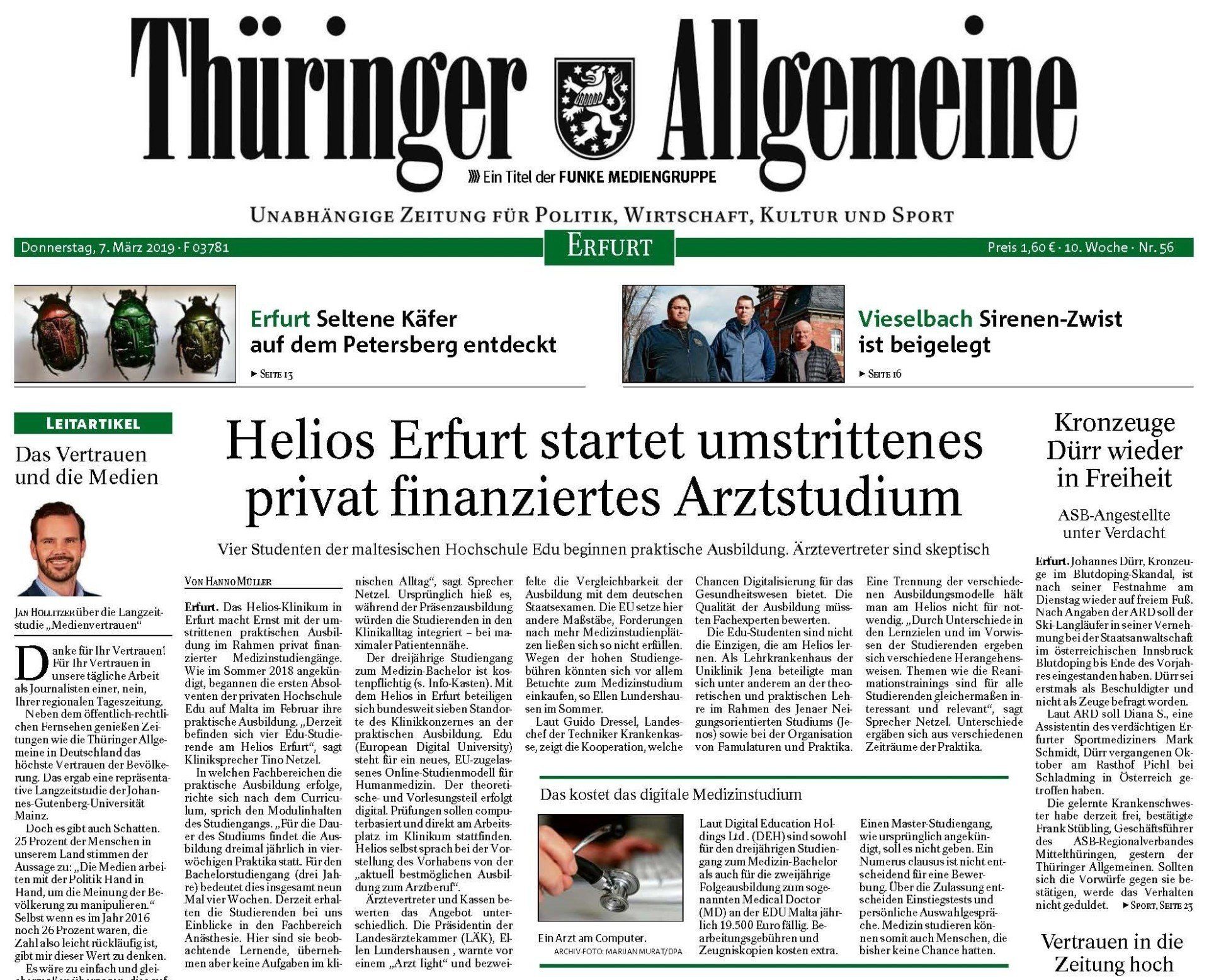 edu making front-page-news in Thüringen / Germany
