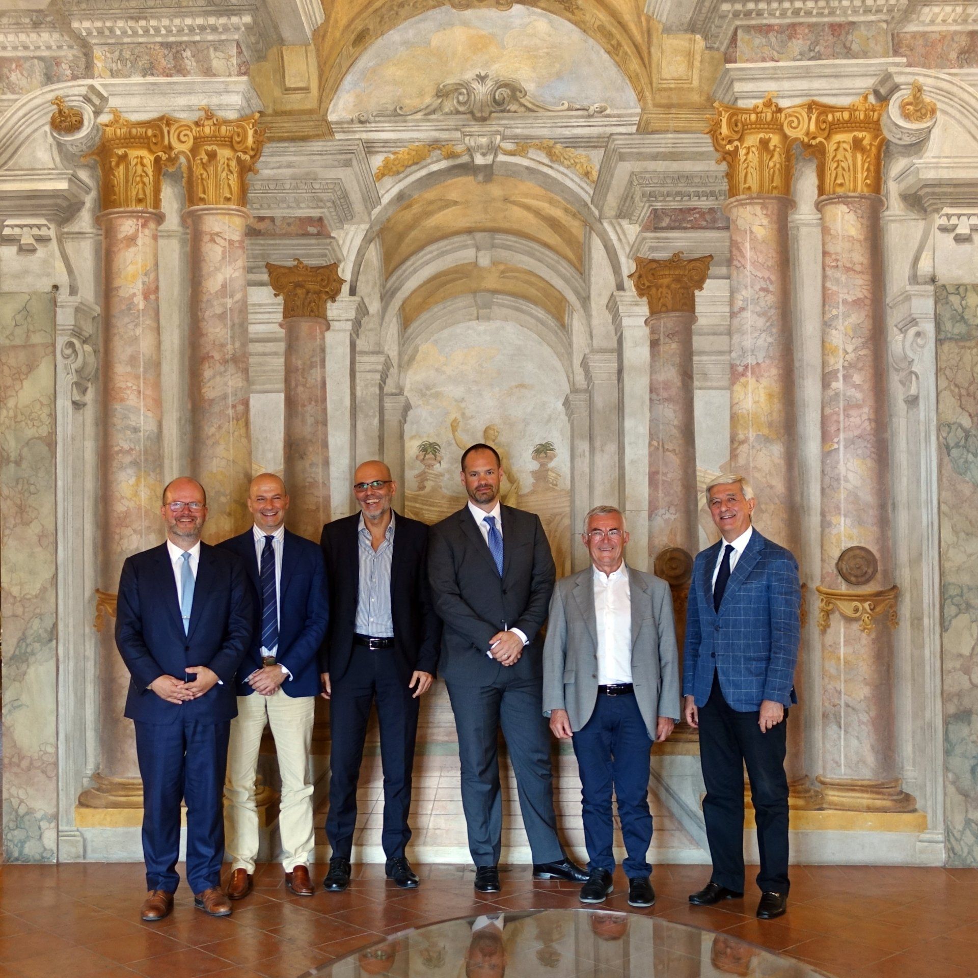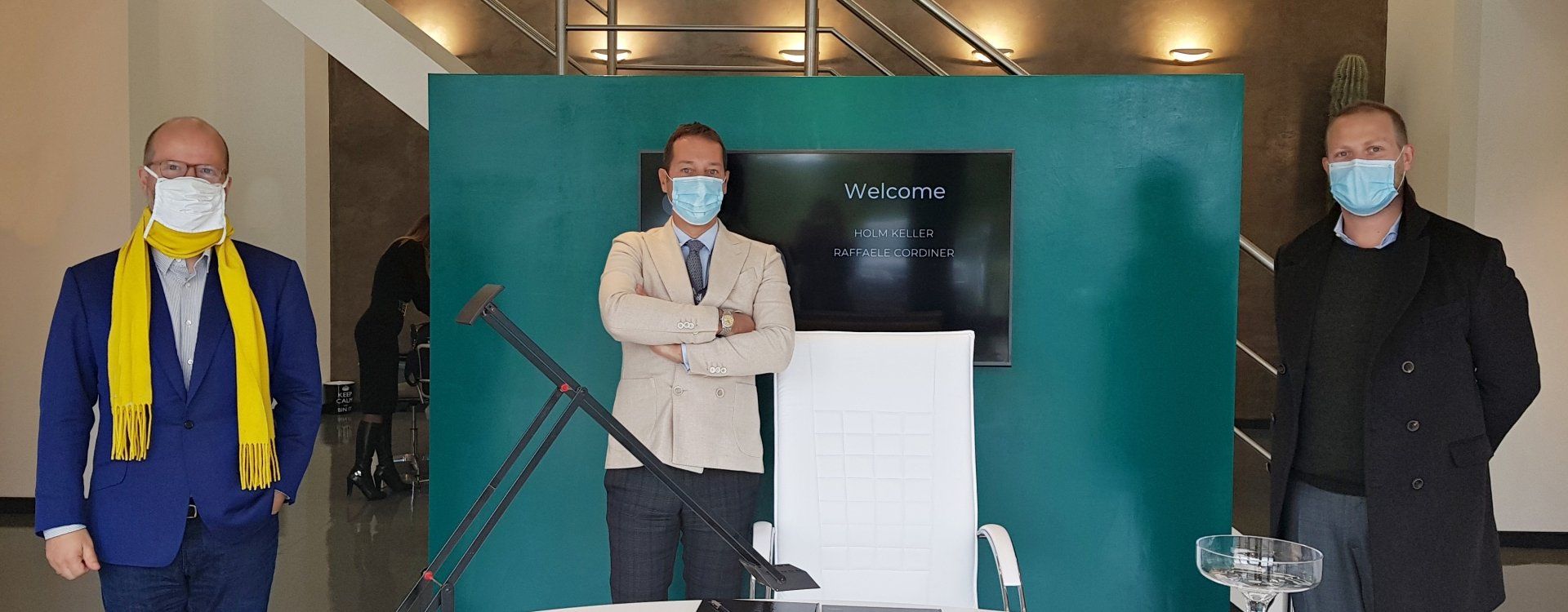 ButtonMayor Luigi De Mossi (2nd from left), with Paolo Giuliani, Head of the Urban Planning Office of the Municipality of Siena (right), and AchilleS Vaccines CEO Riccardo Baccheschi (left)