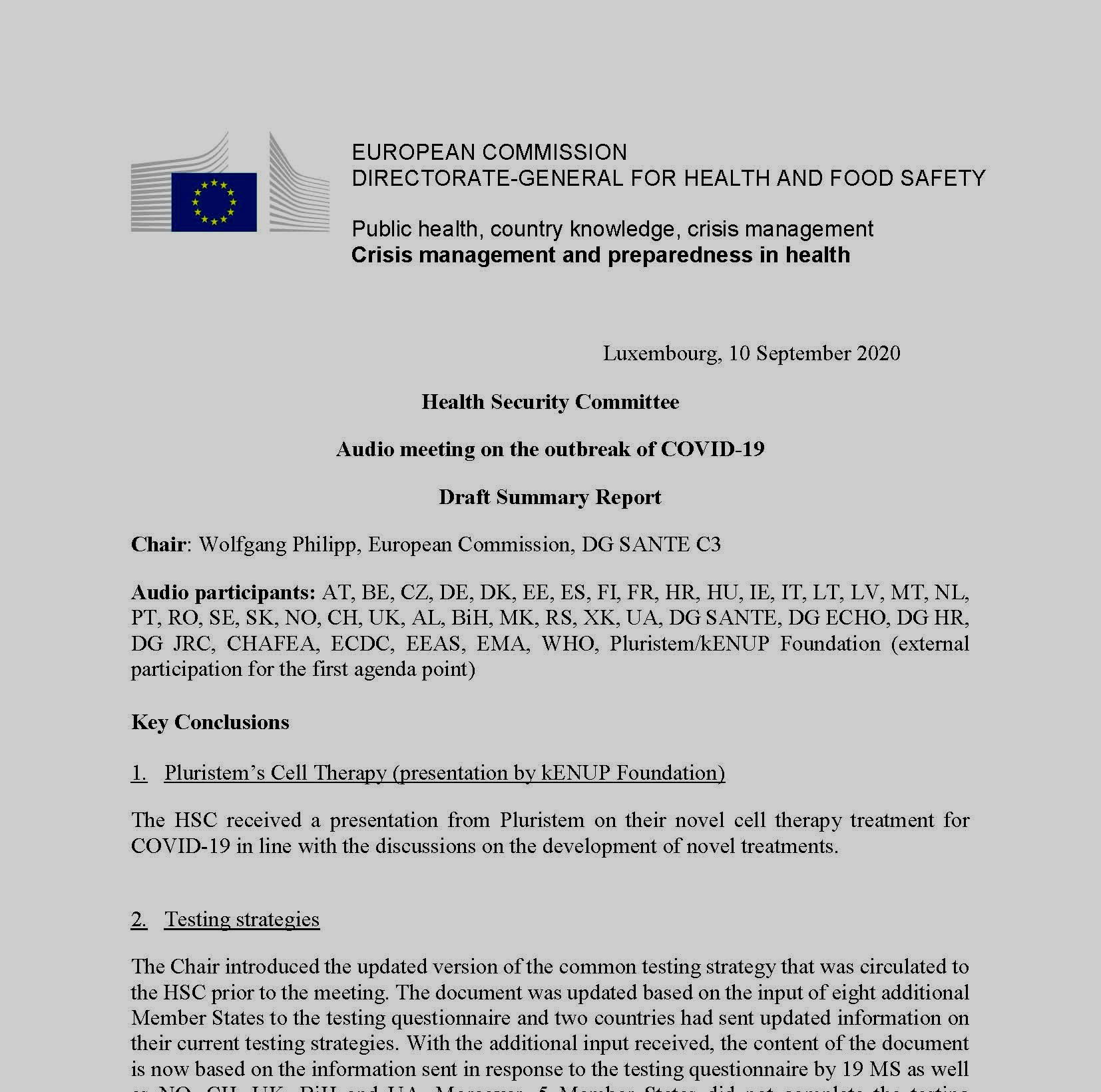 kENUP with Pluristem at the EU Health Security Comittee